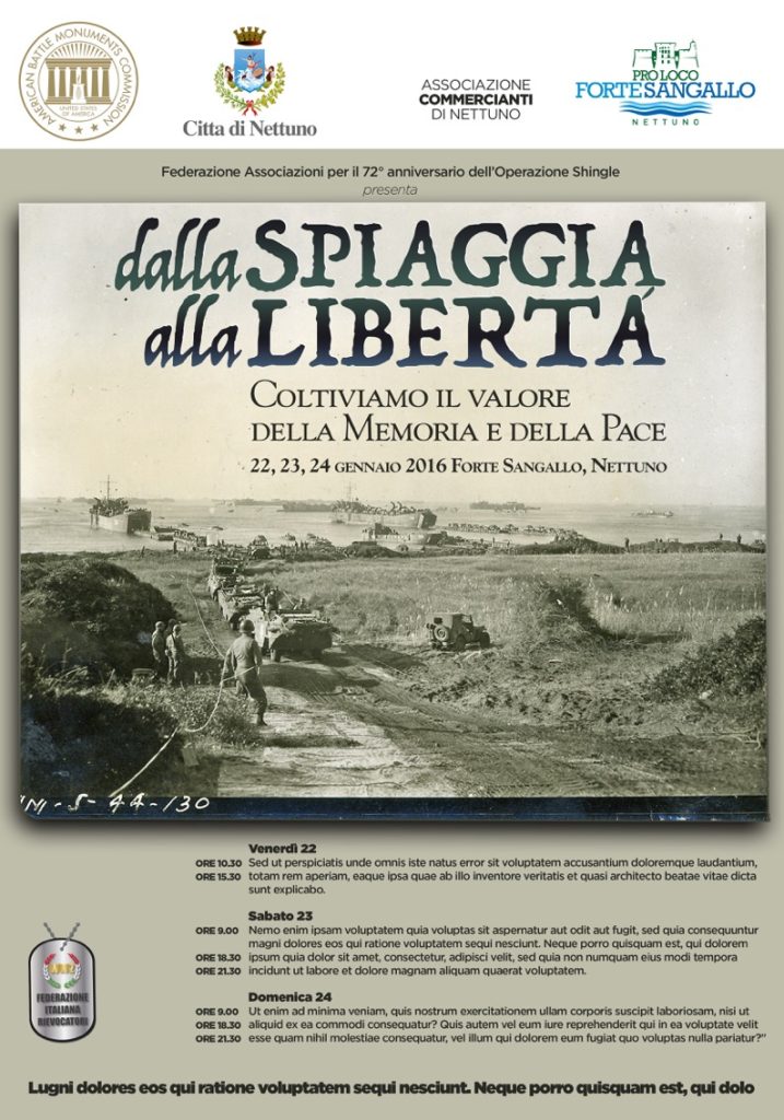 Nel gennaio 2016 ha preso ufficialmente avvio il progetto “Dalla Spiaggia alla Libertà”, primo grande evento dedicato alla commemorazione strutturata dello Sbarco di Nettuno, in occasione del 72° Anniversario dell’Operazione Shingle.