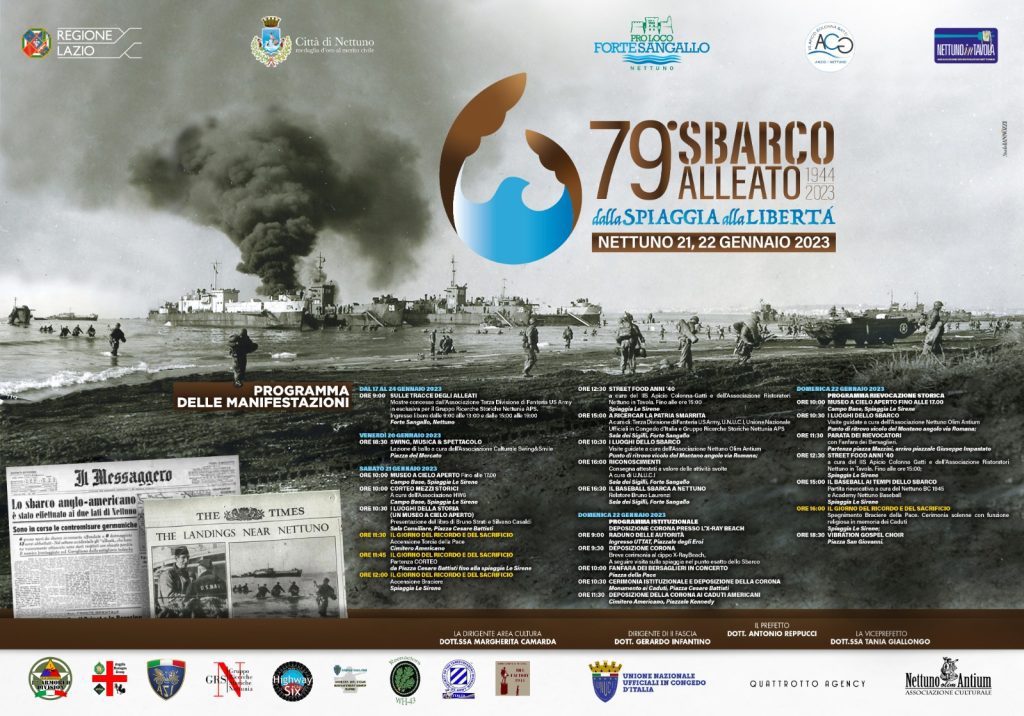 Il 21 e 22 gennaio 2023 Nettuno ha commemorato il 79° Anniversario dello Sbarco Alleato con un programma ricco di iniziative istituzionali, rievocative e culturali, nel segno del percorso simbolico “Dalla Spiaggia alla Libertà”.